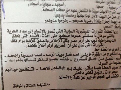 فضيحة فى امتحان اللغة العربية بمدرسة ههيا الثانوية مسقط رأس محمد مرسى بالشرقية